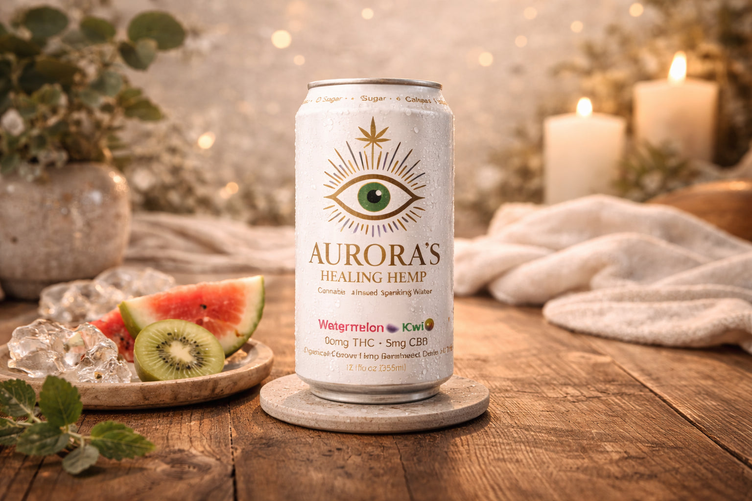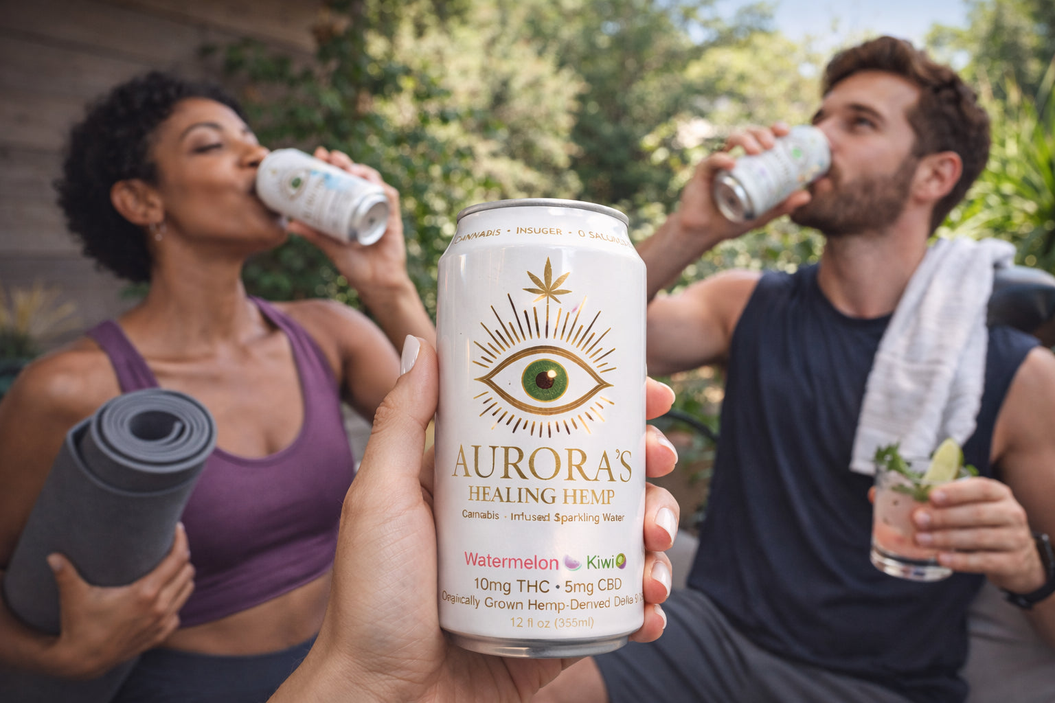 Elevate your experience with Aurora's Healing Hemp. Organically grown THC infused drinks.
